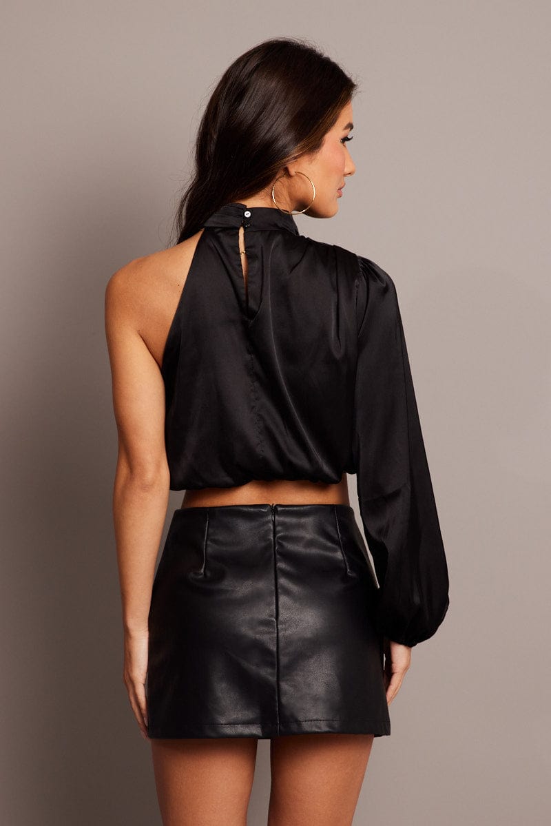 Black High Neck Blouse One Sleeve Asymmetric Top