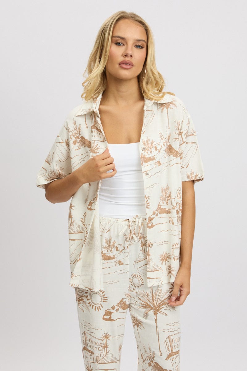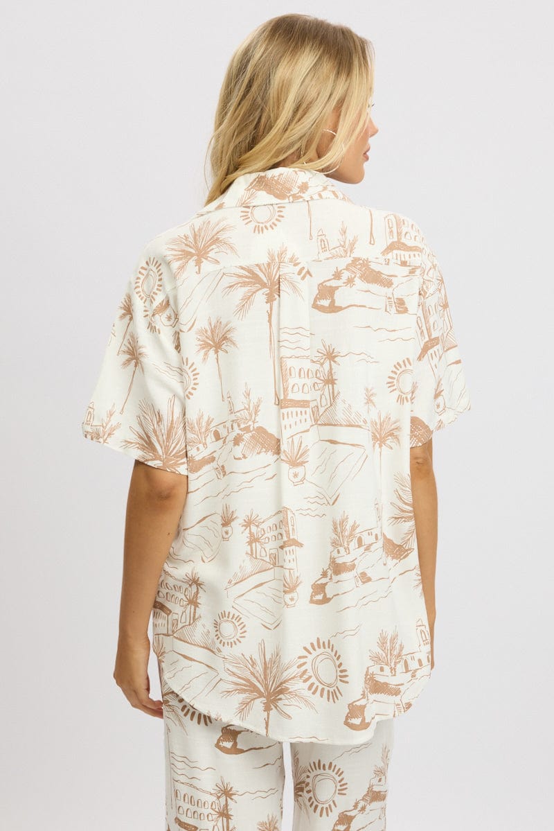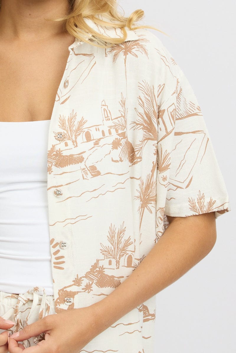 Brown Abstract Relaxed Shirt Short Sleeve